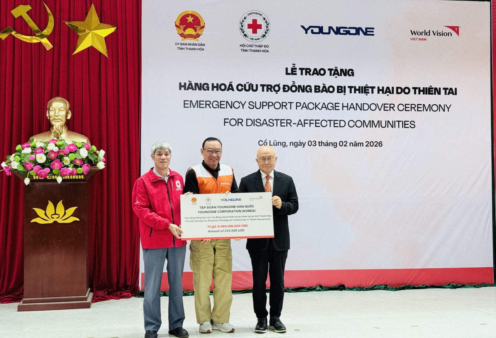 Nhằm kịp thời hỗ trợ các gia đình và trẻ em chịu ảnh hưởng nặng nề bởi bão số 10 năm 2025 (Bualoi), ngày 3/2 tại tỉnh Thanh Hóa, tổ chức World Vision International tại Việt Nam (WVIV) phối hợp với UBND tỉnh Thanh Hóa, Hội Chữ thập đỏ tỉnh và Tập đoàn YoungOne tổ chức lễ trao tặng hàng hóa cứu trợ cho người dân xã Cổ Lũng (huyện Bá Thước cũ).