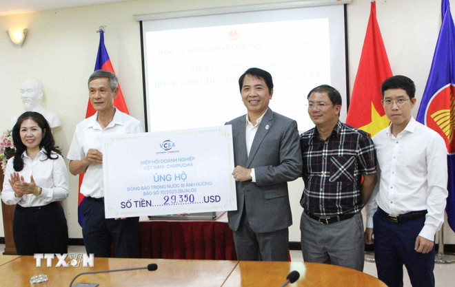 Ngày 10/10, tại Campuchia, các cán bộ, nhân viên Đại sứ quán, đại diện các chi bộ tại Phnom Penh Hội Khmer -Việt Nam, Hiệp hội Doanh nghiệp Việt Nam – Campuchia và các doanh nghiệp đã đóng góp số tiền 41.346 USD và 7,1 triệu đồng tương đương khoảng 1.050.000.000 đồng Việt Nam (một tỷ không trăm năm mươi triệu đồng).