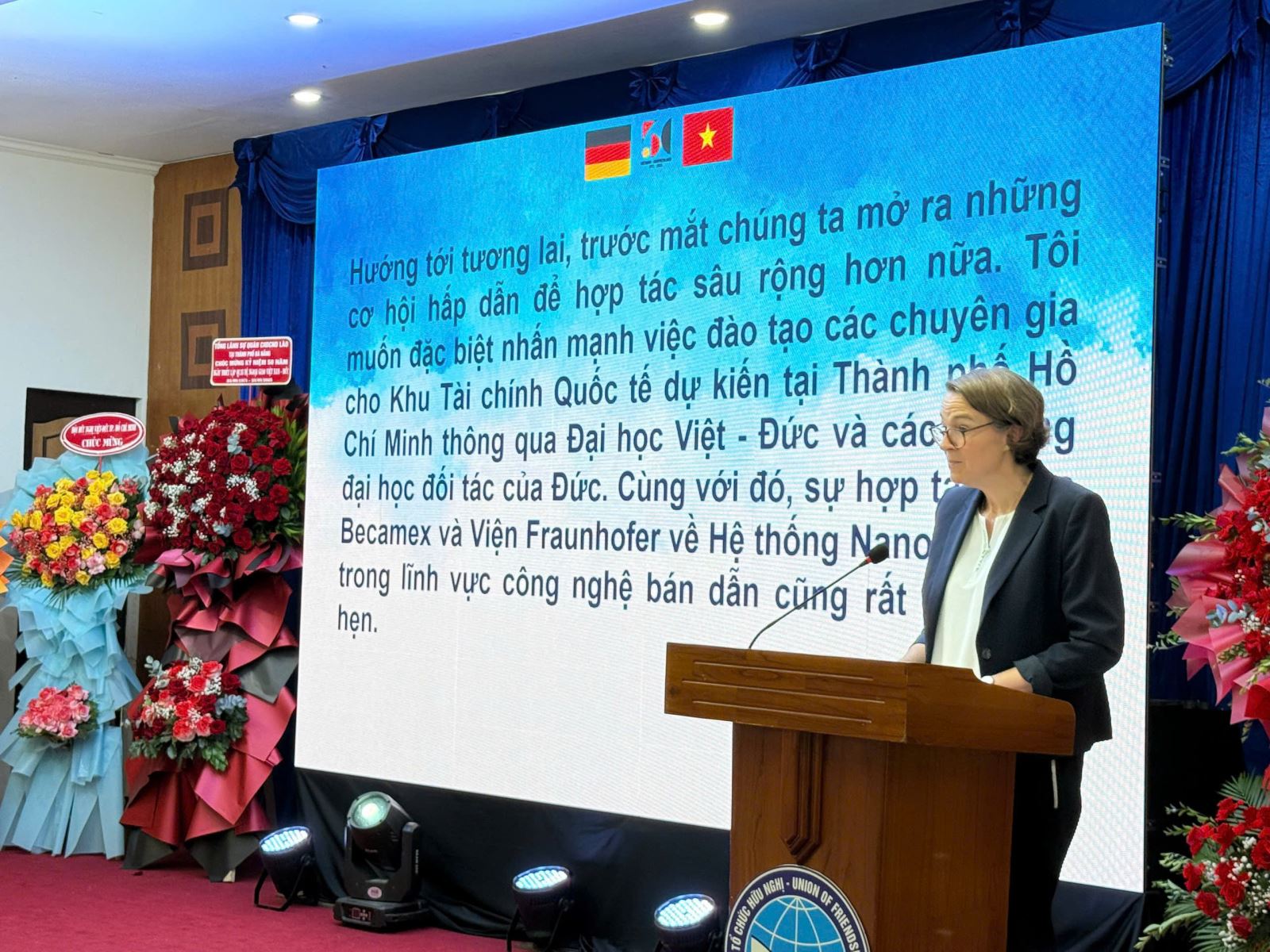 Thay mặt Tổng Lãnh sự quán CHLB Đức tại Thành phố Hồ Chí Minh, bà Andrea Maria Suhl, Tổng Lãnh sự đã gửi lời cảm ơn đến UBND thành phố, Liên hiệp các tổ chức hữu nghị thành phố và Hội hữu nghị Việt Nam - Đức thành phố tổ chức chương trình long trọng và đầy ý nghĩa. Bà cho rằng, quan hệ của hai nước trong thời gian qua đã và đang ngày càng phát triển, Đức là một trong những đối tác thương mại quan trọng nhất của Việt Nam và là nhà đầu tư lớn. Việt Nam đang đứng trước ngưỡng cửa của một kỷ nguyên mới và đặt ra mục tiêu đầy tham vọng trở thành một quốc gia có thu nhập cao. Đức, với nền giáo dục và kinh tế mạnh mẽ, là một đối tác hợp lý cho thách thức to lớn này. Thông qua các cuộc tiếp xúc giữa lãnh đạo hai nước trong thời gian qua, bà hy vọng tại thành phố Đà Nẵng trong thời gian đến sẽ phát triển mạnh mẽ trong lĩnh vực giáo dục, đặc biệt là đào tạo ngôn ngữ tiếng Đức để góp phần cung cấp nguồn nhân lực chất lượng cao trong việc phát triển khoa học - công nghệ, công nghệ bán dẫn, … cũng như góp phần làm cầu nối để phát triển mối quan hệ tốt đẹp của hai nước trong thời gian đến.